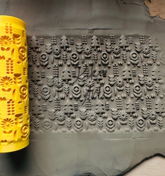 Wałek z choinkami, kwiatami i ludowym motywem 🌲🌸 – idealny na świąteczno-folkową ceramikę